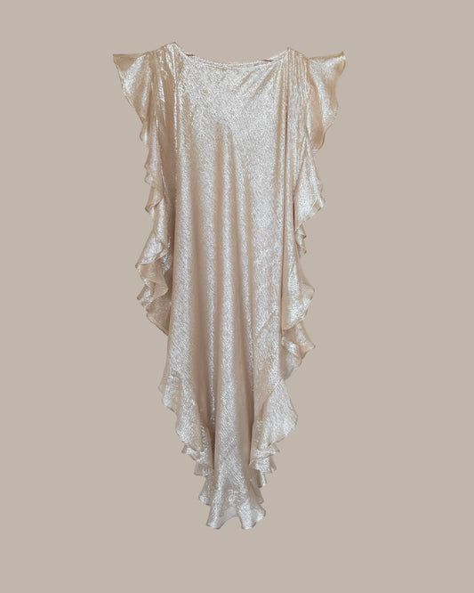 Convertible Ruffle Kaftan in Silver Champagne {Made to Order)