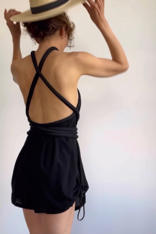 Infinite Rope Shorts Jumpsuit Black Cotton {Made to Order}