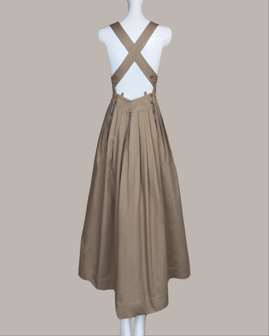 Traveling Pinafore Dress Khaki Cotton Twill {Made to Order}