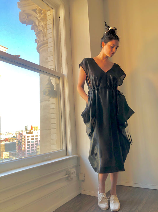 Ondine Dress Black Raw Silk {Made to Order}