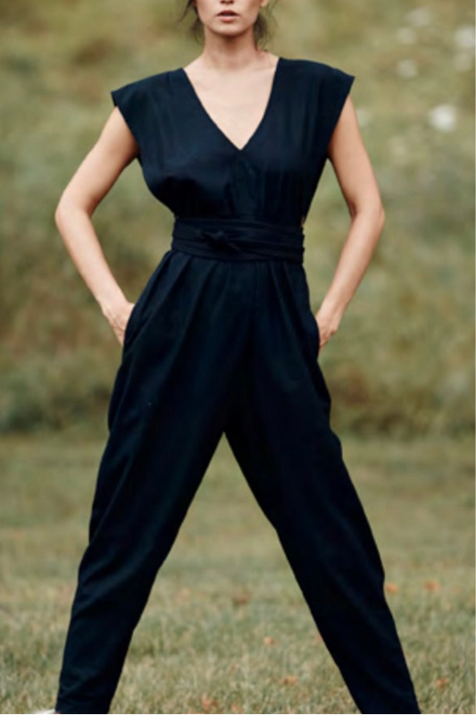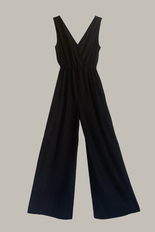 Swanfold Jumpsuit Raw Silk Soft Black {Made to Order}