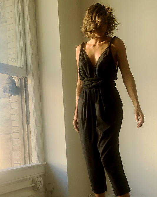 Infinite Rope Jumpsuit Raw Silk Noil Black Kohl {Made to Order}