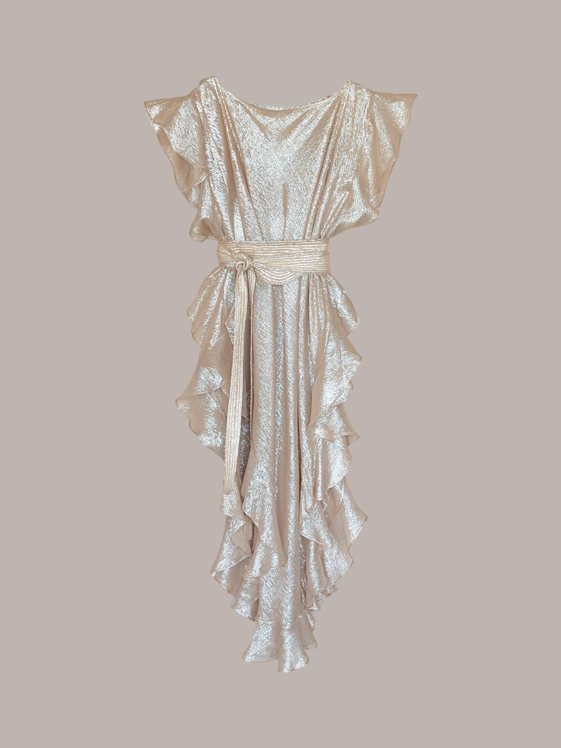 Convertible Ruffle Kaftan in Silver Champagne {Made to Order)