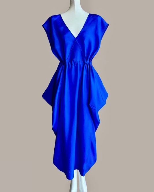 Ruffle Kaftan with Quilted Belt Black Parachute Silk {Made to Order}