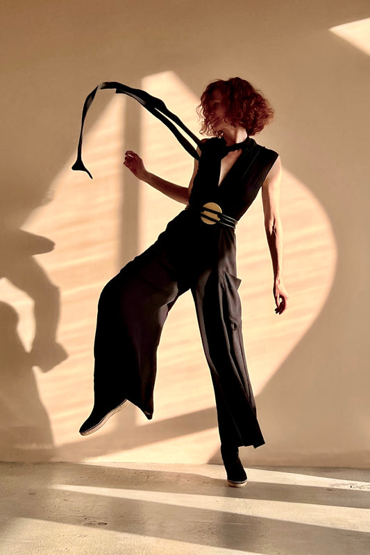 Rimbaud Jumpsuit with Infinite Sash Belt Black Parachute Silk {Made to Order}