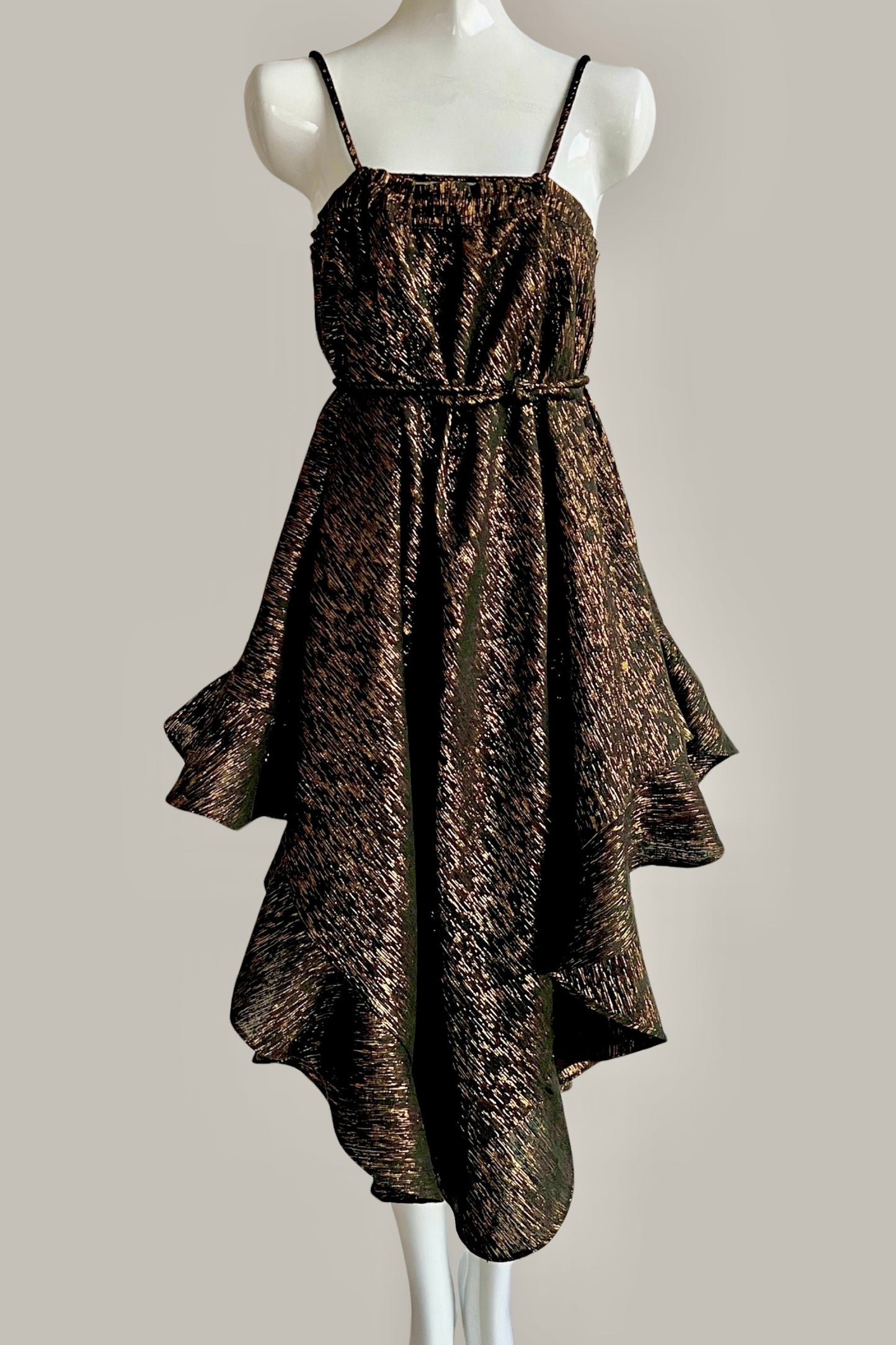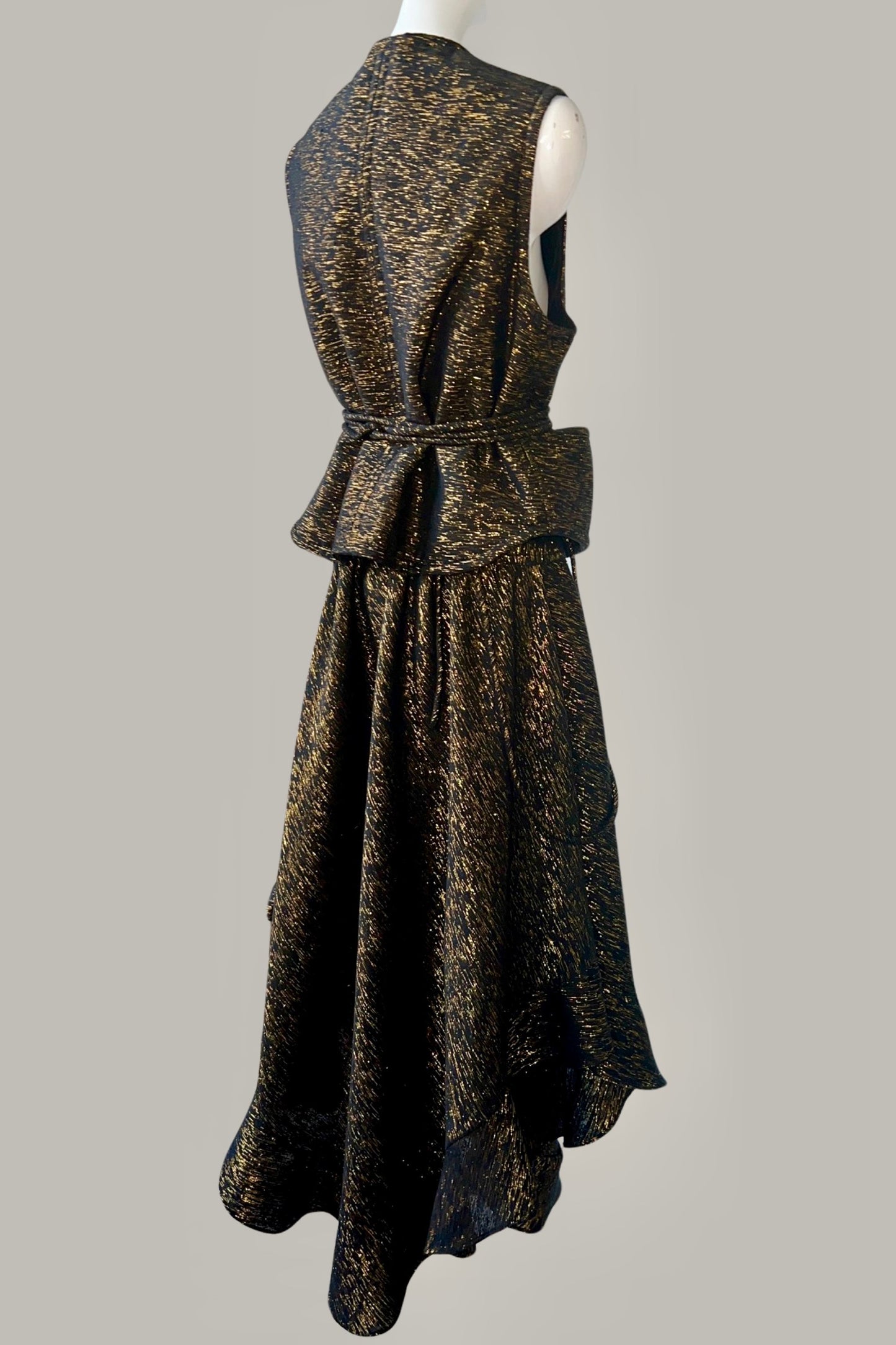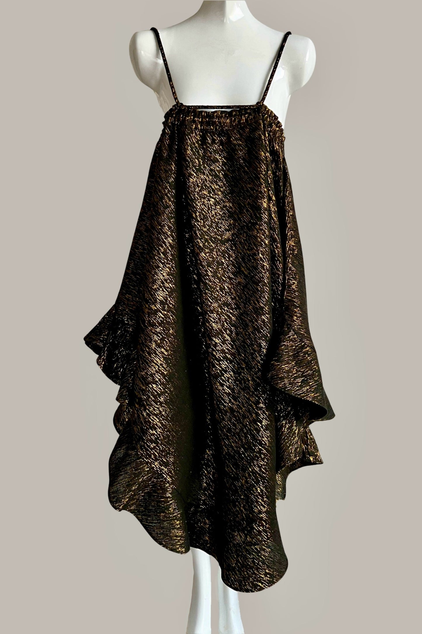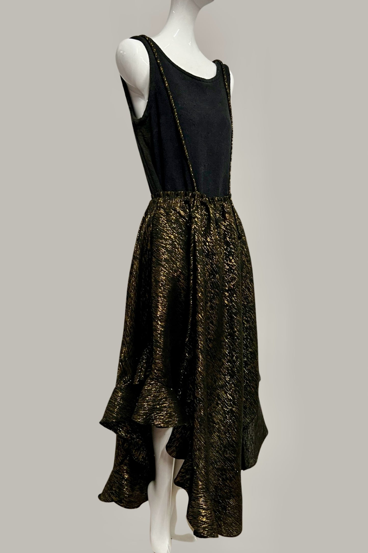 Cabriolet Ruffle Dress & Skirt in Black Onyx Metallic Gold Raw Silk