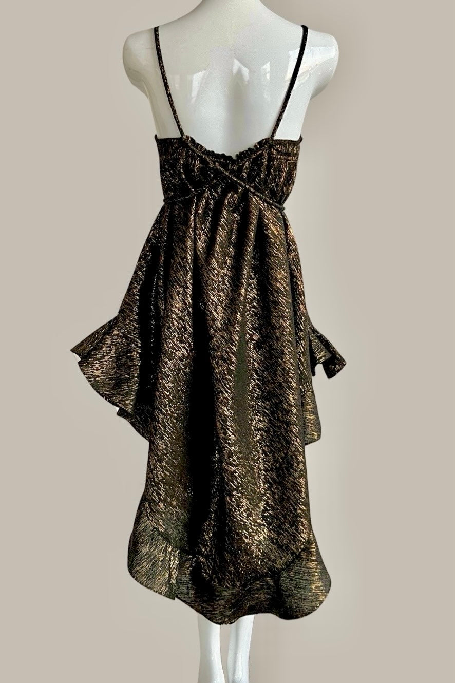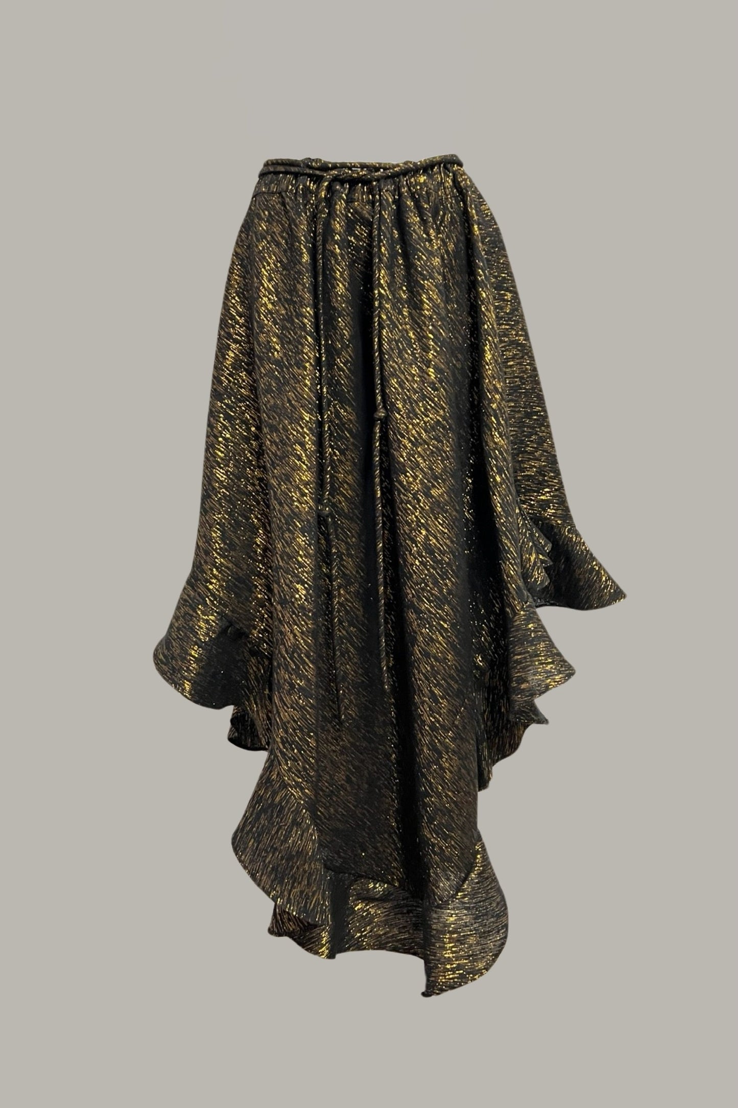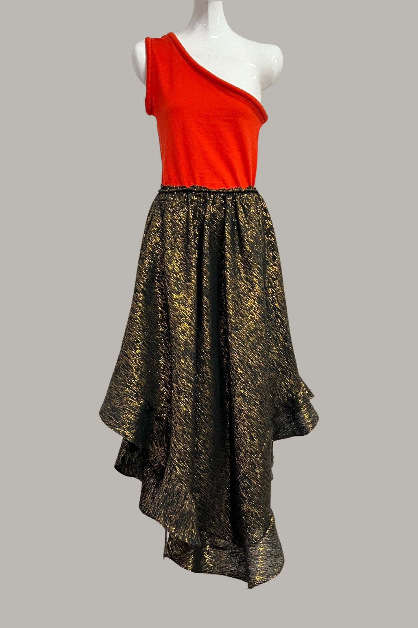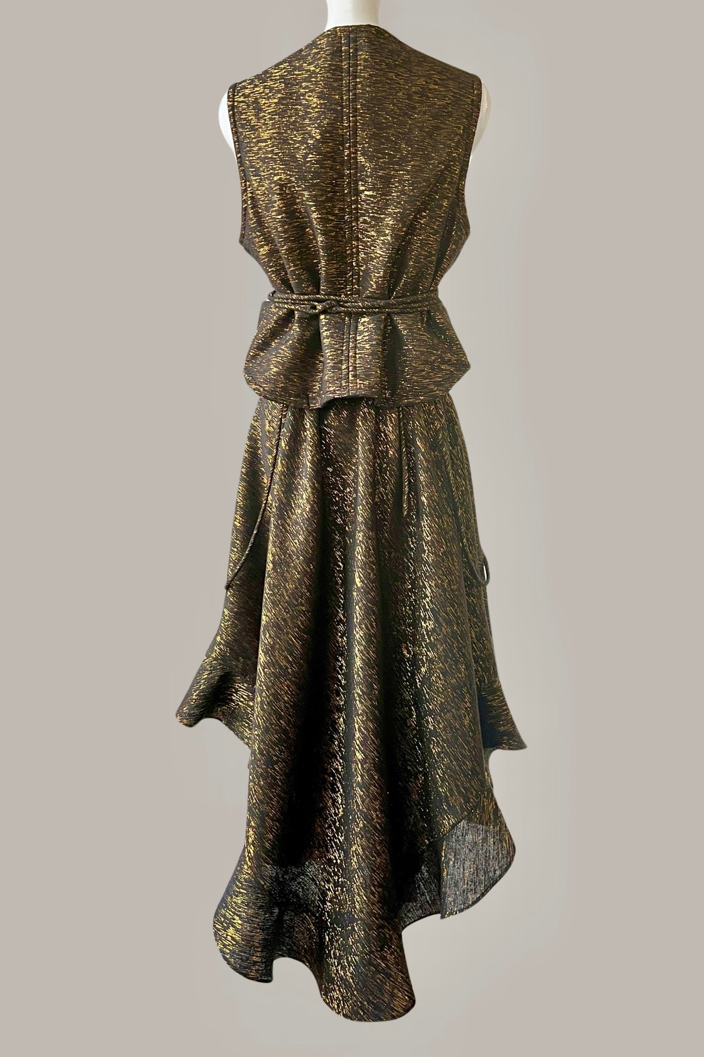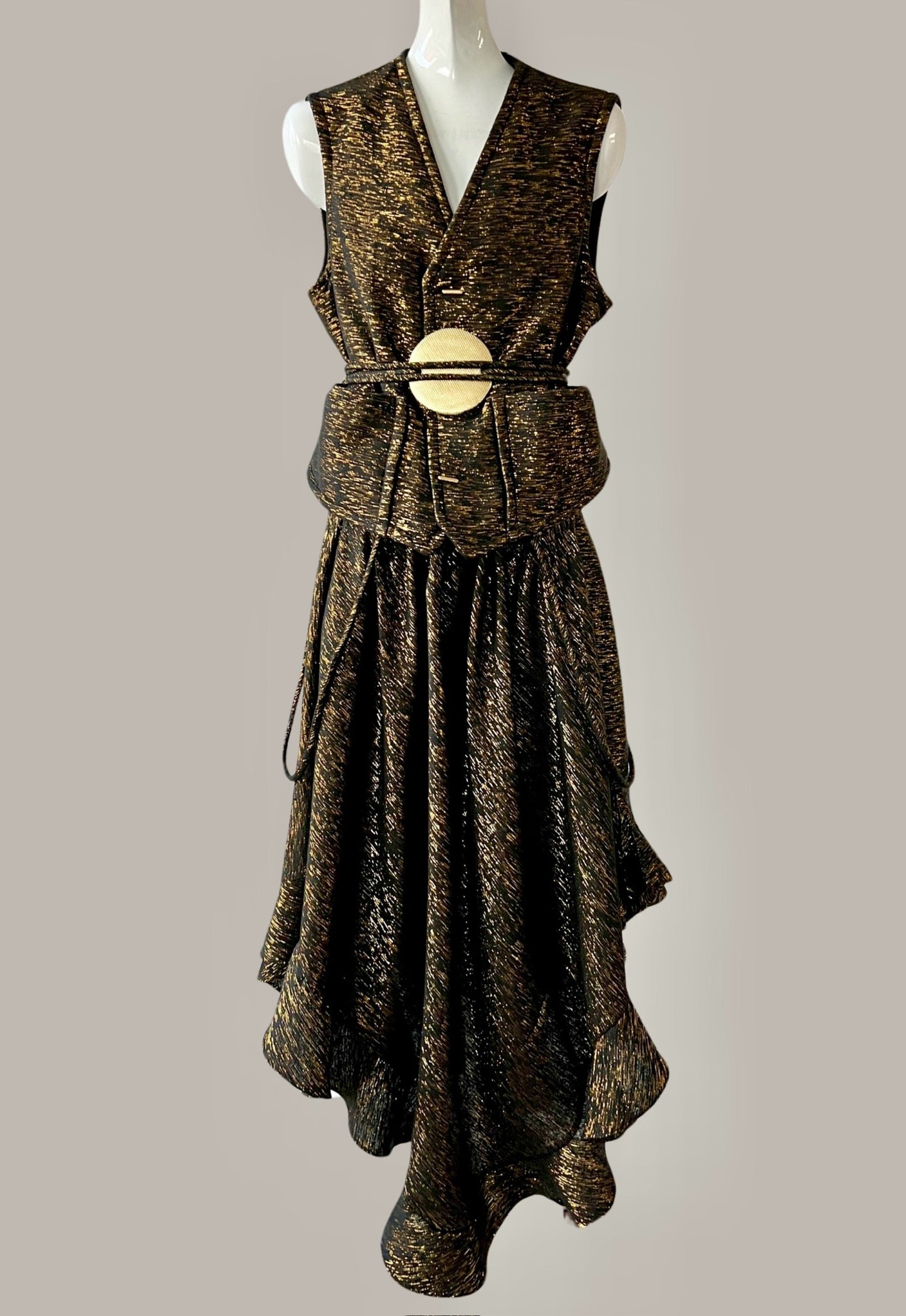 Cabriolet Ruffle Dress & Skirt in Black Onyx Metallic Gold Raw Silk