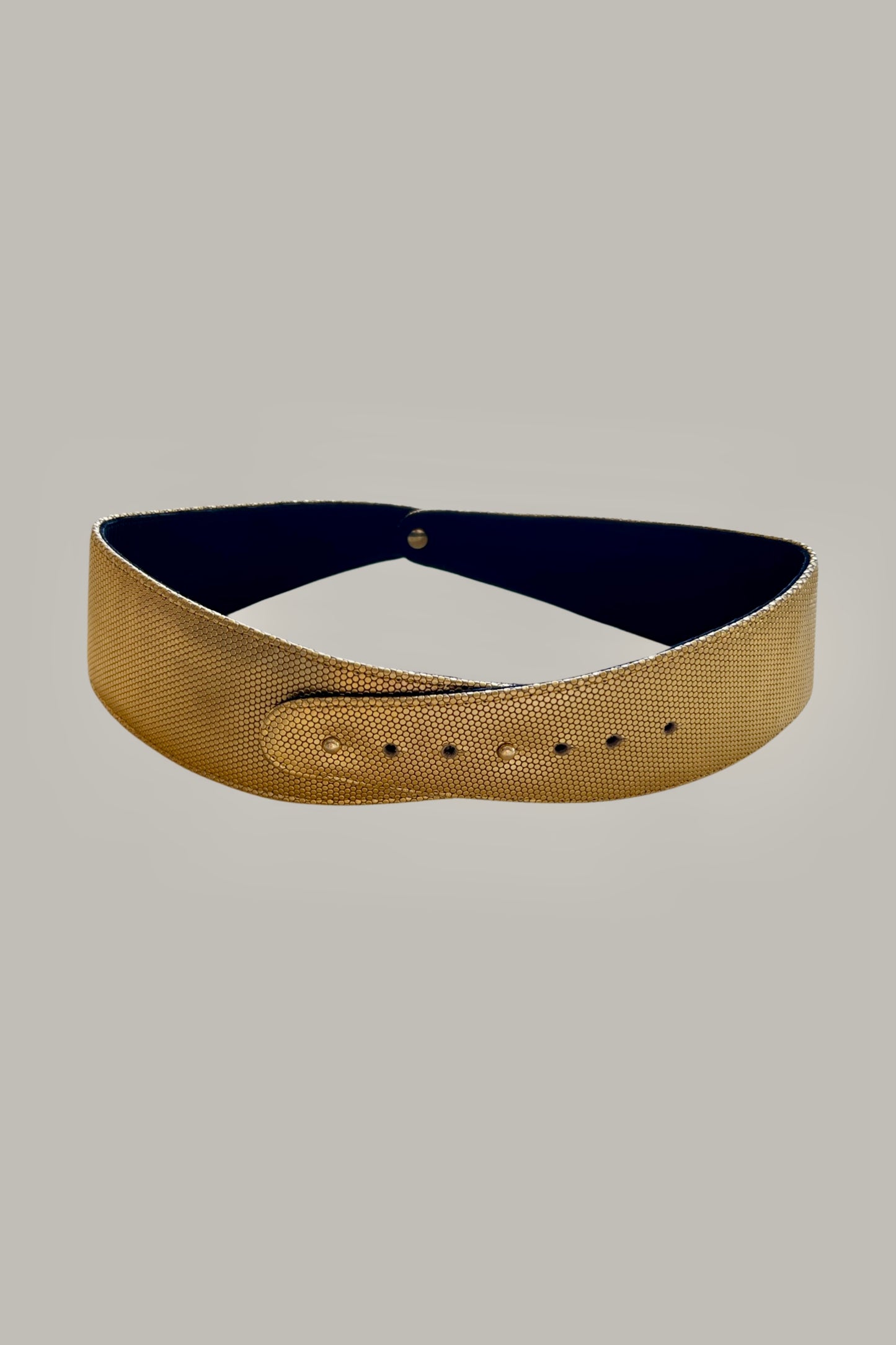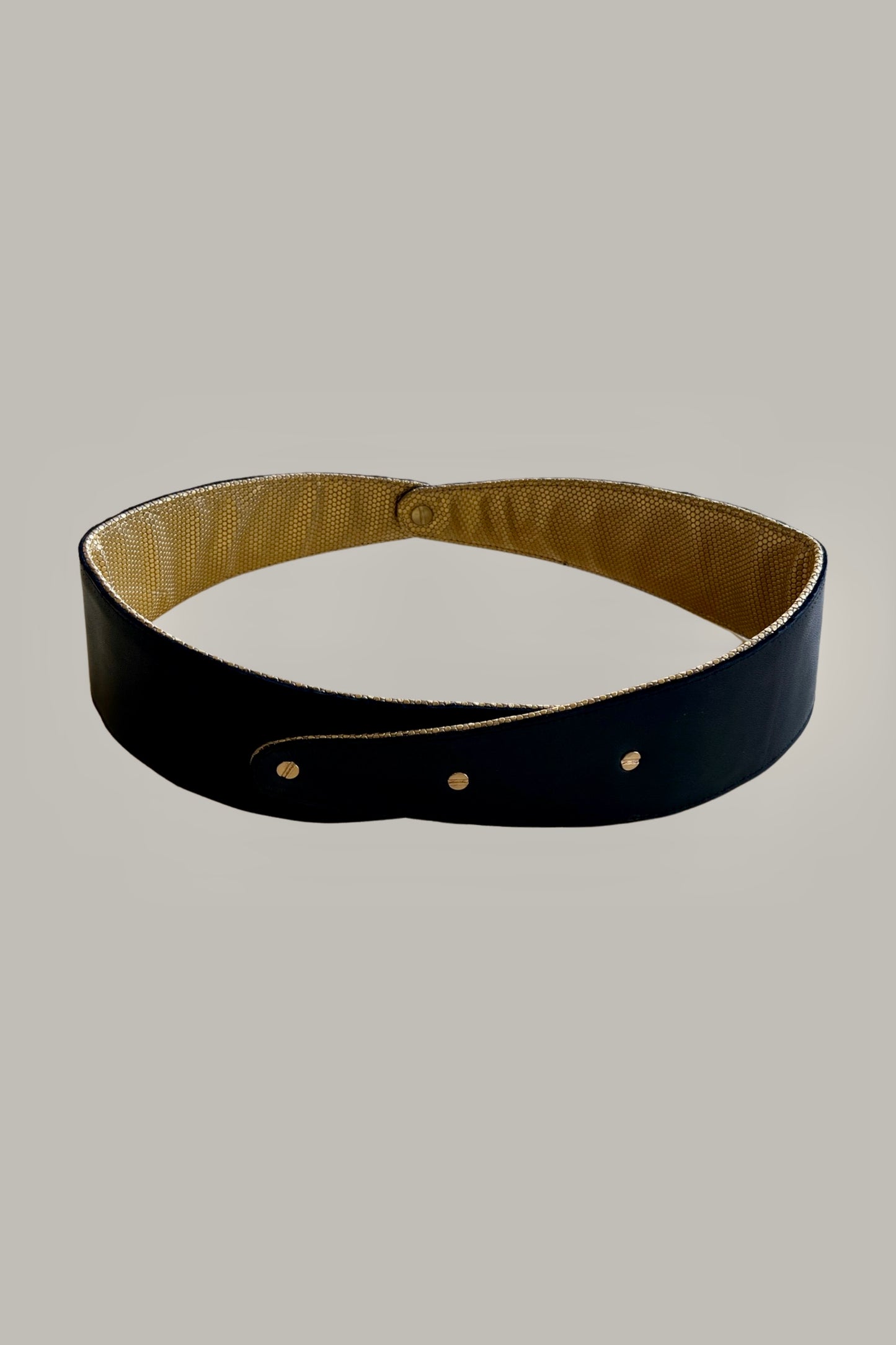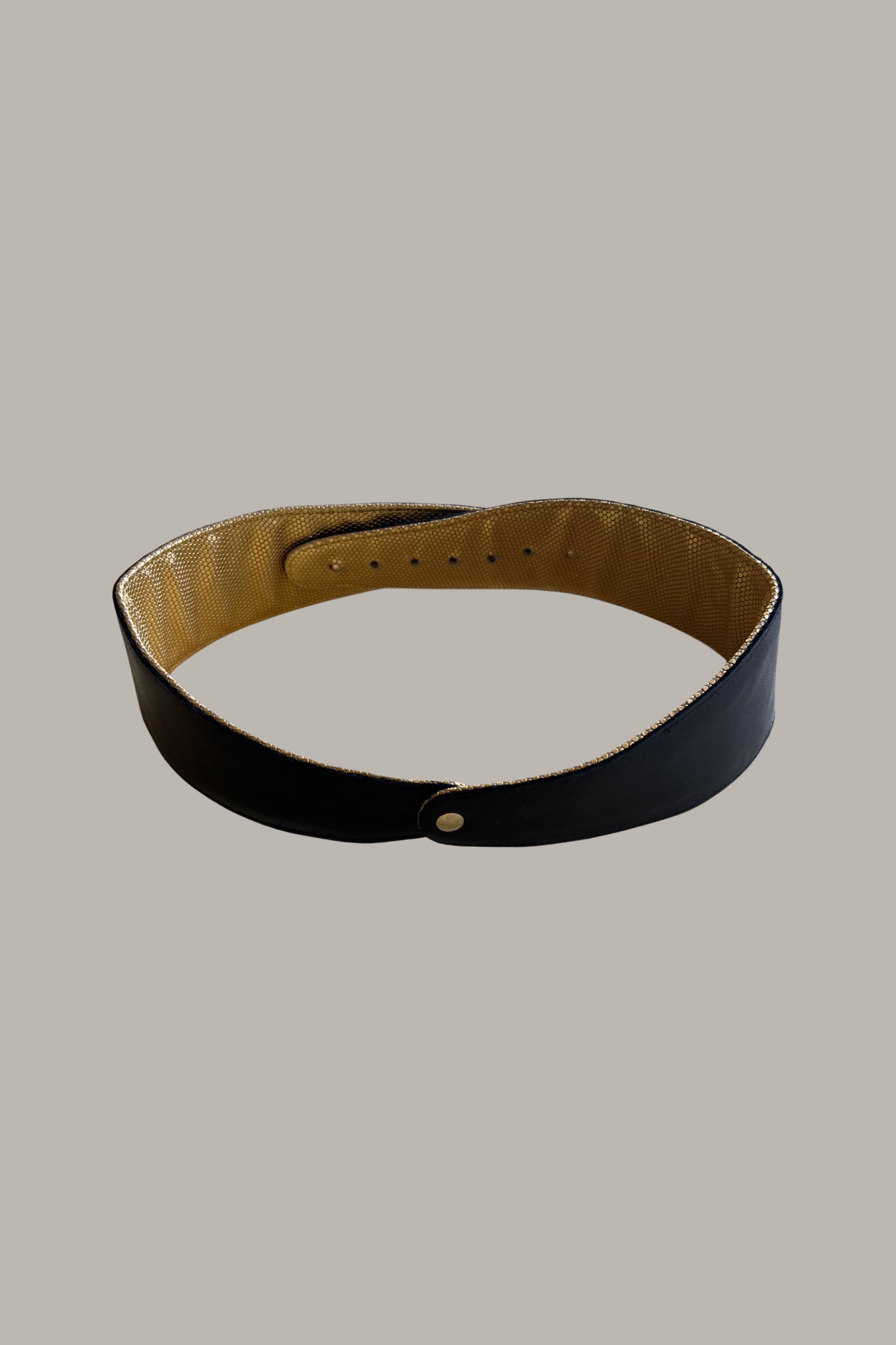 Reversible Crescent Belt in Gold Armour & Black Leather