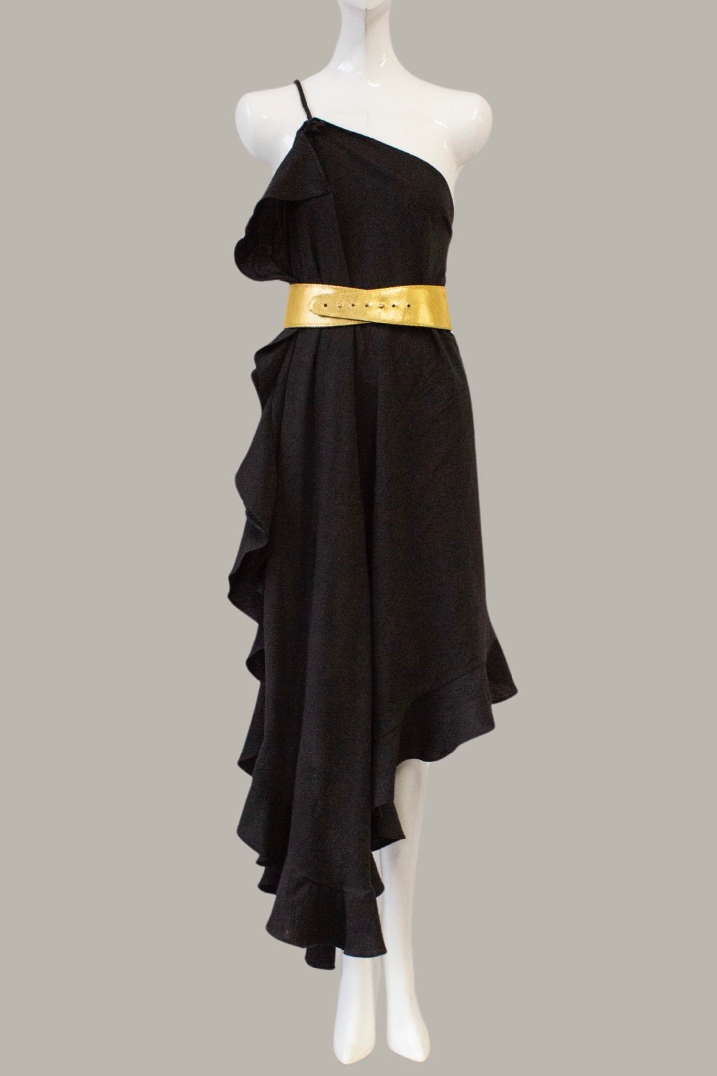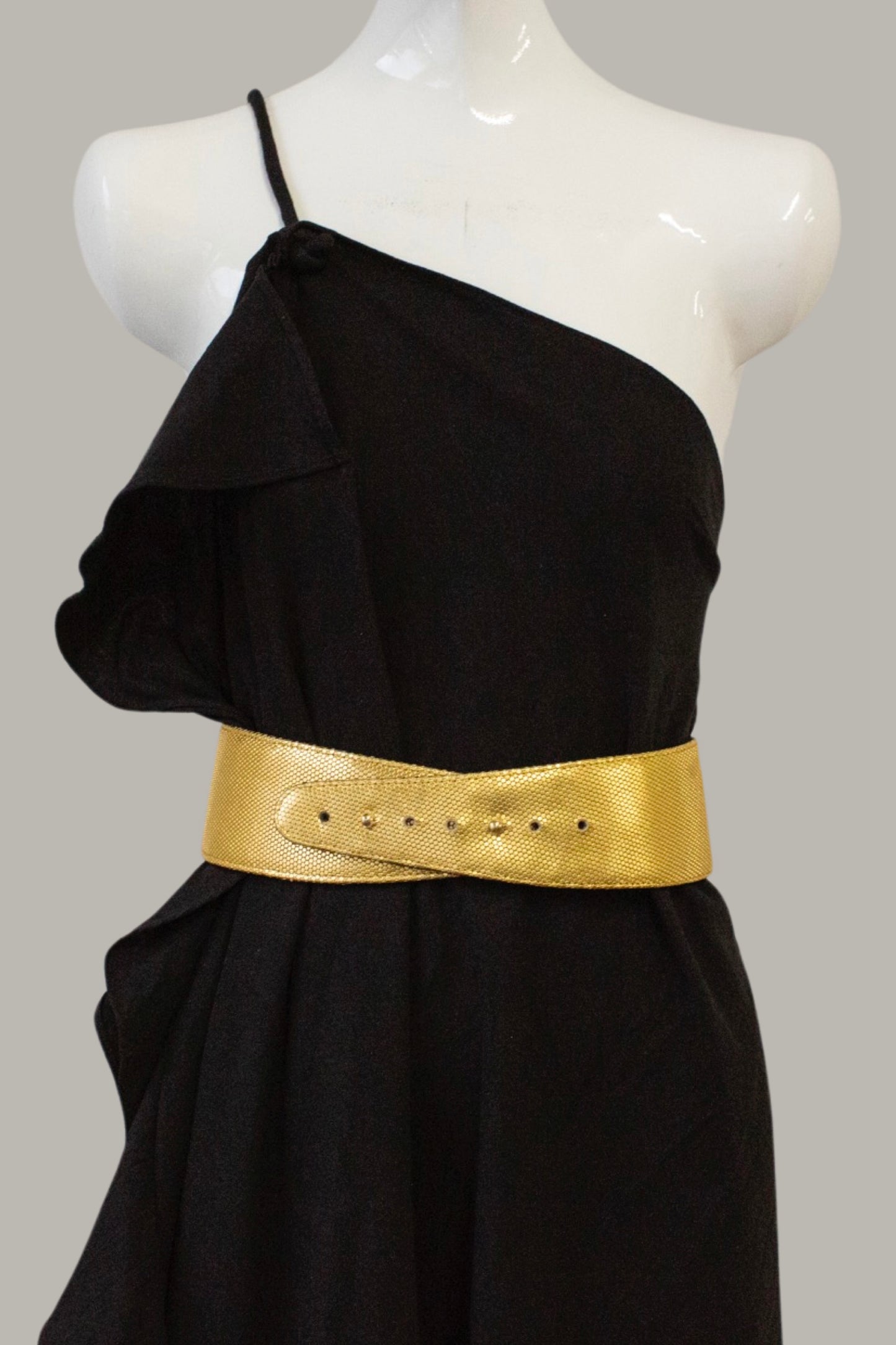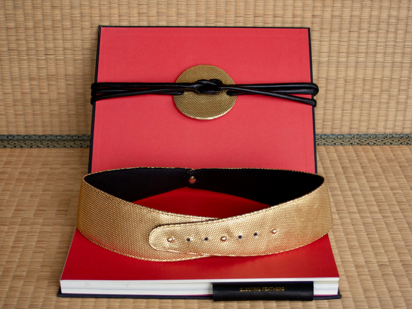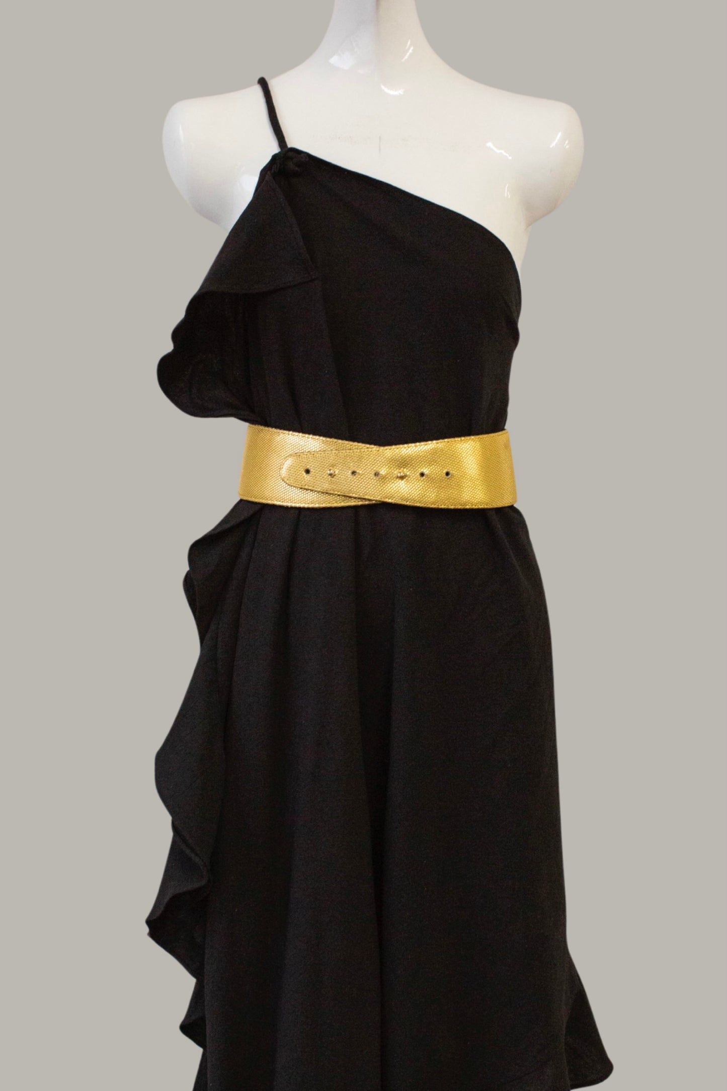 Reversible Crescent Belt in Gold Armour & Black Leather